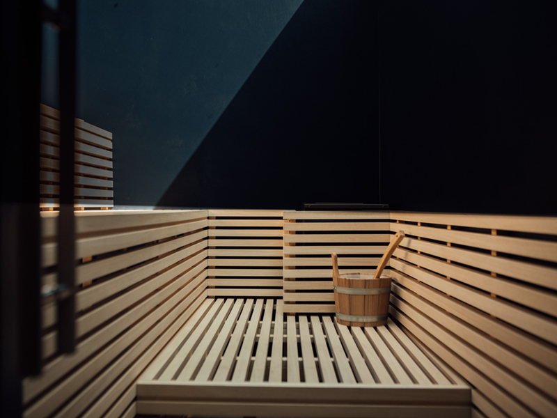 Sich zu den Sternen träumen – und entspannt schwitzen. Geht wunderbar in unserer kleinen blauen Haussauna. Täglich von 16 bis 21 Uhr geöffnet.